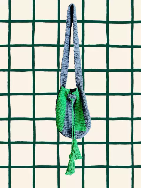 Descripción: Bolso tejido a mano en algodón con mix and match de colores.